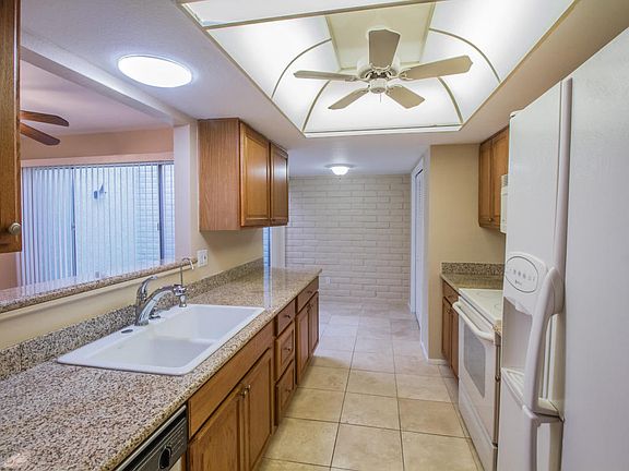 Immaculately maintained townhouse in great location! Community boasts an abundance of amenities, including 2 pools, spa, and tennis courts! Kitchen features granite counters and white appliances, plus tons of counter and cabinet space! Spacious formal dining room right off the kitchen, leading into the great room with beautiful brick fireplace! This home is ideal for entertaining! Both bathrooms boast granite vanities and upgraded fixtures. Relax and unwind in the huge master suite, which features private access to a separate patio! This townhouse also boasts a spacious backyard oasis with two covered patios! All this home needs is you!