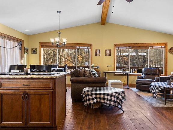 This charming 4-bed/2-bath ranch home in Michaywe neighborhood offers a relaxing retreat with shared private access to all-sports Opal Lake. The main level features a an open concept living/kitchen area with abundant natural light, hardwood floors, granite counters, and a full bathroom. A finished walkout basement provides additional living space and options for entertainment or a guest suite. The property also includes a detached garage with a breezeway and essential modern amenities such as cable, natural gas, and central air. Enjoy access to local amenities including golf, tennis courts, indoor/outdoor pools, and trails. Whether for year-round living or a vacation retreat, this property offers the perfect blend of comfort, functionality, and natural beauty in Northern Michigan.