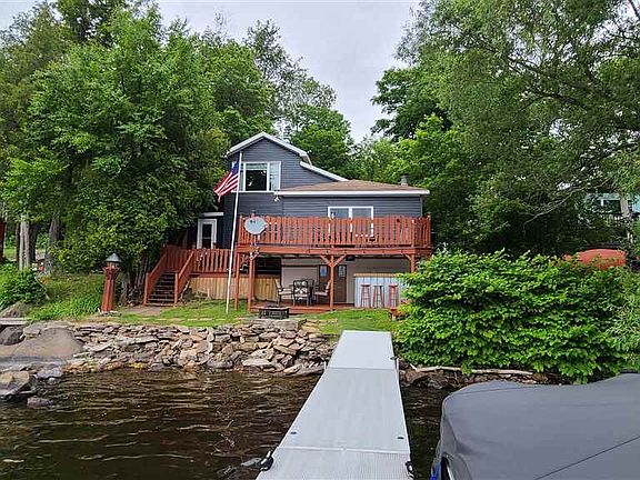 Gorgeous year round home located on Lower Chateaugay Lake! This updated home features new windows, flooring, siding, decks and so much more. As you enter through the Adirondack style mudroom, you are welcomed to a bright and open dining and kitchen area with direct views of the Lake. The well-equipped kitchen features beautiful hickory cabinets with plenty of storage and ample counter space. The large living room has hardwood floors, a propane stove and absolutely stunning views of the waterfront. Also on the main floor is a bedroom with plenty of closet space, a large laundry room and full bathroom (shower only). Upstairs is a huge loft style master bedroom with large closet and some of the best lake views in the house. Outside you will find three levels of decks, patio and breathtaking views all around. The 26'aluminum roll out floe dock will convey. Invite all of your friends and family, as there is plenty of parking for everyone. There is also a detached garage and shed for all of your storage needs. This beautiful home comes fully furnished from top to bottom, including the outdoor furniture, Blackstone grill, propane tabletop fire pit and more. All you have to do is pack your bags and start enjoying lake living at its best.