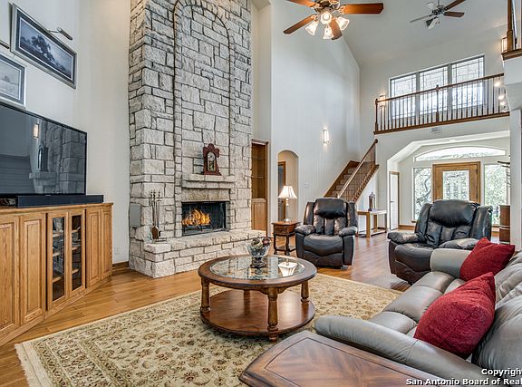 Tranquil living in the heart of the city, this one and a half story home is truly a one-of-a-kind residence said to be built on the highest elevation in Oakland Estates! Welcoming the outdoors in, the sun-filled, open concept home showcases vaulted and tray ceilings, arched entries, thoughtfully planned built-ins and rich hardwood floors. You will want to entertain for hours in the great room with its impressive two-story floor to ceiling stone gas fireplace and inviting views of the backyard. The chef-inspired kitchen features a stunning curved window facing the front of the home, wood beam accents, an oversized island with vegetable sink, double ovens, and ample cabinetry and storage. Serving is made easy with the multi-level breakfast bar boasting a built-in wine rack and adjacent formal dining room with a built-in hutch. You?ll have a choice when selecting your master suite, as two of the bedrooms offer walk-in closets, dual vanities and access to the charming sun room. Two well-lit additional bedroom suites, a private study, a skillfully designed utility room and an exercise loft with balcony access to escape and take in the city views complete the interior. Truly the heart of the property, the backyard oasis provides a covered patio, heated salt water lap pool with a stacked stone water feature, free-standing hot tub and a second seating area under mature trees. The outdoor enthusiast will enjoy having a state-of-the-art storage shed for their RV or boat with extra space for a workshop!