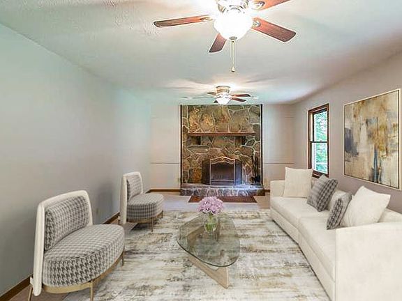 Gorgeous raised ranch w/ huge rocking chair front porch, .48 lot full of beautiful flowers and flowering trees. Cozy living room w/ wood burning fireplace, lg dining room, updated kitchen w/ stainless steel appliances, split bedroom plan featuring 3 bedrooms & two full baths recently updated w/ new flooring. Large private backyard w/ storage building & tons of flowers. Ideal location right off 1-75, close to shopping and dining, & 10 min front Lake Allatoona