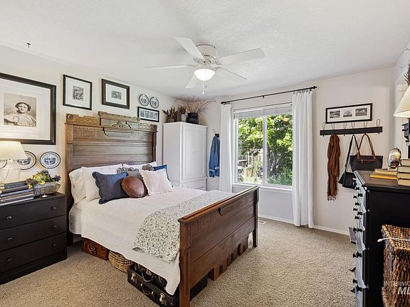 Boise Bench home with an interior designer’s touch! The stunning kitchen renovation features quartz counters, Whirlpool appliances, a deep stainless sink, a pantry, and painted cabinets with matte black hardware. Tranquil backyard views from the primary suite with a private bathroom. A versatile flex room provides ample space for a home office or extra storage. Enjoy the outdoors in your private backyard oasis, complete with a cement patio and professionally landscaped flower beds. Well-maintained with updated roof, furnace, and water heater. Durable luxury vinyl plank flooring. It is conveniently located near Phillippi Park and with easy access to I-84. Escape the restrictions of HOAs and embrace affordability at its best!