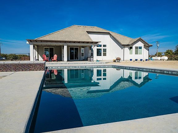 Located just outside of Kingsburg, Ca. on 1.58 Acres is a beautifully designed Raven Custom home. Built in 2018 with 5 spacious bedrooms 3 full bathrooms & a swimming pool, this home leaves nothing to be desired. In the kitchen is a large Island with Turtle Shell granite, Delta touch faucets, custom stained ( driftwood) knotty alder shaker cabinets, soft close drawers/cabinets with pull out storage. Unique concrete kitchen and prep sink, GE Monogram 48 6 burner (w/griddle), double oven, gourmet hood with heat lamps and warming shelf. Kitchen Aide black stainless built in refrigerator, double speed/convection oven and 45 bottle dual zone wine chiller finish out this showroom kitchen. Custom porcelain tile plank flooring, tall ceilings, a dining space and large windows for natural lighting.The Master bathroom has custom granite counters, large walk in shower, freestanding soaking tub & HUGE walk in closet. Finish off this property with a swimming pool and large covered patio.