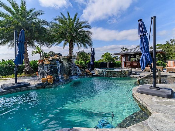 Stone fireplaceHeated pool and jacuzziMosquito misting systemAustralian cypress floorPerfectly manicured lawnPrivate circular drivewayPoolside firepit