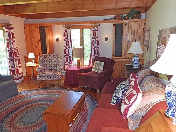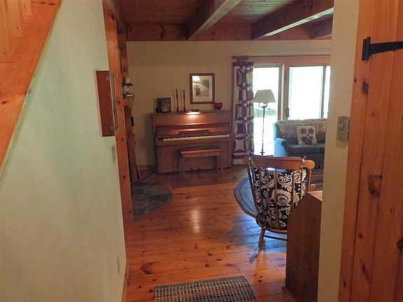 An ARTIST-DESIGNED HOME can be your PRIVATE residence or welcome retreat. From the deck watch humming birds enjoy your flowering trees and perennials as you listen to the nearby brook. Wander your 16+ acres, being embraced by nature. The house has the "Welcome Home" feel that only wood floors and beams can provide. Feeling is believing!