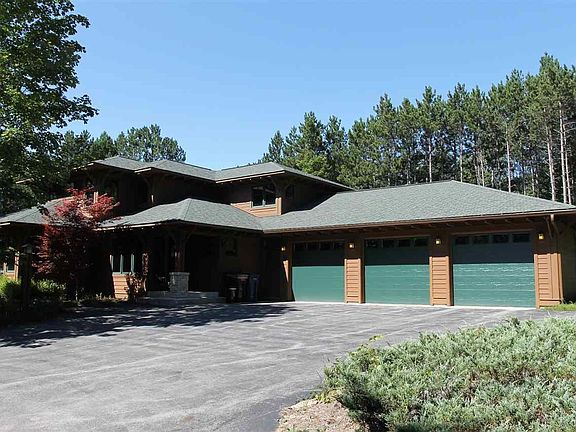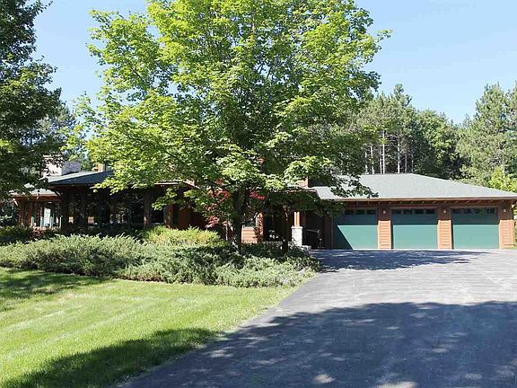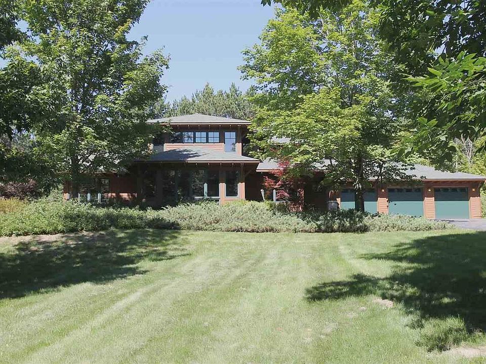 Stunning craftsman home set on 30 acres of private, rolling, wooded Leelanau countryside just a few miles from downtown! The drive winds through tall pines and opens to this lovely home, nestled in a clearing with a rolling lawn. Hallmarks of this home include a generous use of hardwoods throughout and extensive built-ins. The foyer opens to an open-plan living space with a great room under vaulted tongue-and-groove ceilings with a floor-to-ceiling stone fireplace, a well-equipped kitchen with abundant bar seating at the island, granite counters and top-of-the-line appliances and a versatile dining room. Adjacent to the kitchen is a two-seat homework center, a private office with floor-to-ceiling built-in bookshelves, and a beverage station with bottle shelving and a wine fridge. Retreat to the master suite with ample storage closets, a private bath with an over-sized soaking tub and walk-in closet, and slider doors out to the patio featuring a hot tub and pond. The main level also features a large laundry/mud room off the garage and an additional room ideal for home-schooling or a playroom. Upstairs you will find three bedrooms, one with a private bath and the other two sharing a Jack-and-Jill bath. The lower level is finished with a large family room and potential 5th conforming bedroom. In addition to the 3-car heated attached garage, there is a 2-car detached garage just behind the home and a pole barn with stalls and a fenced pasture near the road. Additional acreage is available.