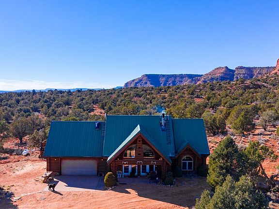 Tucked away - just minutes from Kanab - experience this elevated level of living each and every day. The setting for this gorgeous ranchette is one of a kind with lots of red rock view, native terrain and sweeping vistas thru to the Kaibab. Trees abound. Nature abounds. Open fields in south 1/2 of parcel to allow for your own cattle, horses, pasture and barns. Classic Log cabin with artistic, authentic and real details. Excellent condition. Soundly built. Quality Pella window package. The cabins is just right - not too big and not too little. 1/2 bath has a cedar sauna. 2 car attache garage is plumbed. Separate1200 sf (30x40) steal frame is insulated. Garden area. Many separate zones for all types of hobbies. No cc&r's. It's just what you're looking for.