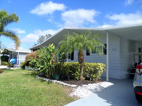 ***Exclusive and shown by listing agent only*** GRAB THIS BEAUTY NOW! Lush, tropical easy care landscape adds to the super curb appeal of this spacious 2 bedroom, 2 bath, unfurnished home. A complete renovation with all newer big ticket items; membrane roof 2019, A/C, vapor barrier 2015, Weather Tite tilt-in windows 2019, Florida room under air with tinted acrylic vertical slide windows 2017, master step-in shower 2021, new ductwork 2015, new plywood subfloors and laminate top flooring 2018, new carpeting 2018, drywall walls and ceilings, crown and baseboard moldings...the list goes on! This home is absolutely move-in ready. A huge, fully equipped kitchen has solid wood cabinets, newer appliances and bar top breakfast bar. There is a new step-in shower in the spacious master en suite plus 2 WALK-IN CLOSETS! You'll spend hours relaxing in the peaceful and private Florida room or barbecuing on the new patio with tropical privacy landscape. A large utility shed houses front loading washer and dryer and extra refrigerator. Driveway and carport sealed/painted January 2022. You'll enjoy every day in Camelot Lakes, a gorgeous gated 55+ community with daily organized activities. Everything is at your fingertips; beautiful clubhouse, two crystal clear pools, whirlpools, computer room, TV room, billiard room, fabulous library, dry saunas and large fitness center. Just 7 miles to fabulous Siesta Key with spotless white sand beaches and beautiful turquoise waters. Take a dip, throw out a line or enjoy an energizing walk along the shore. A never ending supply of quaint shops, top restaurants and some of the nicest people you'll ever meet. Monthly lot rent $1371 includes water, sewer, trash pickup, lawn maintenance, taxes and amenities. Luxury living at the lowest cost in Sarasota!