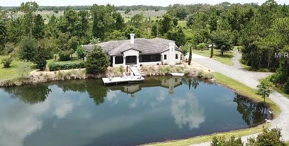 This gorgeous 3BR 2BA home boasts over 2800 SF of living area on just under 5 acres. There is no shortage of extras with this home. The living room features a surround sound system that also extends to the porch overlooking the pond. A dual sided wood burning fireplace between the living room with gas starter is not only beautiful but functional on a chilly night. The gourmet kitchen features custom cabinets perfectly matched to the granite countertops, a large island with built in sink, under counter lighting and upgraded stainless steel appliances with whisper quiet disposal and dishwasher. Just off the kitchen you will find a large pantry with a custom stained glass pocket door and a lovely wine bar complete with wine cooler. The master suite is the perfect setting for a relaxing evening. Start with a long soak in the beautiful claw foot tub and then retire to the master bedroom to relax by the light of the gas fireplace. The master closet is also equipped with beautiful designer french doors and custom wood shelving. If you prefer a shower to the tub the master bath also offers a large walk in shower with dual shower heads and built in seating. Not only is the interior fabulous...the exterior is too. A tile roof with gutters and an underground drainage system and of course the private dock on the pond complete with Tennessee flagstone steps. With this home you can enjoy the great outdoors in privacy while still being close to OIA, Medical City, and Theme Parks as well as Florida beaches.