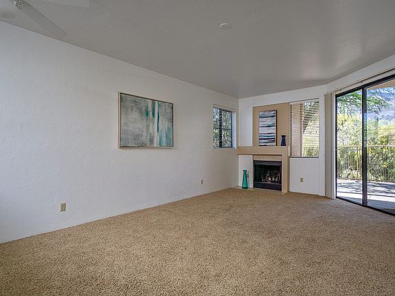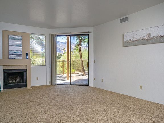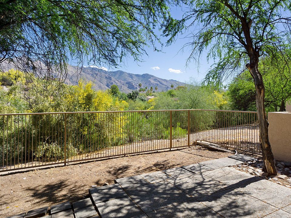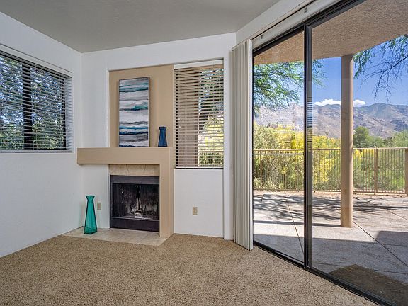 Fabulous location right at Swan and Sunrise in the Foothills with stellar mountain views! This very desirable first floor end-unit condo in gated complex is ready to move in to. Walking distance to several popular dining establishments including Fini's Landing, Bisbee Breakfast Club and Bazil's. Grocery store, drugstore, hardware and more also within walking distance. Private patio and outdoor space boasts gorgeous Catalina Mountain views. Inside, living space offers more views and fireplace. Eat-in kitchen fully equipped and overlooks living space. Master suite has mountain views, access to patio and full bath. Second bedroom is serviced by full hall bath. Complex features community pool. Perfect first-time buyer, downsizer, snowbird or investor.