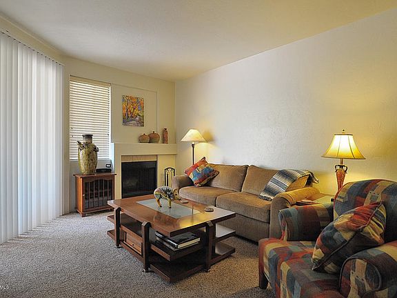 Furnished Vacation Rental - We are currently releasing only 3-month reservations on our properties for the time period of January-March, 2019.This hold will be released October 1,2018 for shorter term reservations.Beautiful condo in pristine condition.Lower Unit; Interior steps down to living/dining and master.Stainless steel appliances & neutral tile.Cozy down by the LR fireplace or relax on the patio or at the community pool.One of Tucson's best locations in the heart of the Foothills, next to restaurants, bakery, grocery store & drug store, and only 2 miles from upscale shopping at La Encantada. Ask about P#2925-QV Seasonal rates: Nov -Apr. 2695 May-Oct $1895. Security Deposit $500 with credit card on file. Cleaning fee $195.00.To avoid misunderstandings, please be advised that ren