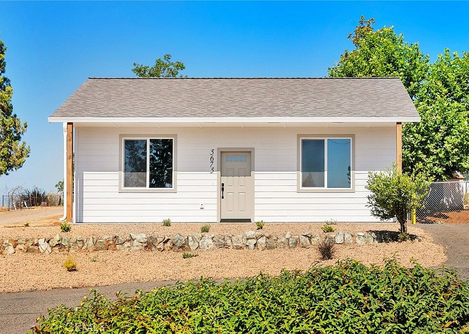 This home was designed with energy efficiency in mind, featuring an owned 2.765kw solar system to be installed prior to closing, as well as a mini-split HVAC system. The fully fenced backyard is perfect for pets or outdoor activities. You'll also appreciate a beautiful shade tree and a shed for extra storage. Centrally located, this home provides easy access to local amenities, plus a quick drive to Chico or Oroville, making it a convenient choice for modern living. The circle driveway and low-maintenance front landscaping provide a warm welcome, with room for a carport on the right side of the home.