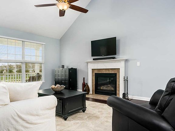 Highly sought after Langford floor plan! Enjoy park views from the covered Front Porch. Kitchen features granite counters custom backsplash 42'' cherry finished cabinets SS appliances large window overlooking Patio. Owners Suite w Vaulted ceiling large window & ceiling fan. Owners Bath has shower, jetted soaking tub dual vanity w custom tile wall backsplash designer mirrors Edison lights cable TV outlet upgraded hardware & fixtures. Closet w multi level hanging space & closet organizer. Other features: Rosewood laminate flooring fireplace soft touch light switches w dimmers, Lafayette blinds, rear storm door, new carpet 2nd floor. Addl garage lights keypad & shelves. Custom Brick paver Patio private fenced yard w gate. 2 Bedrooms, Full Bath and large Bonus room upstairs complete this home!