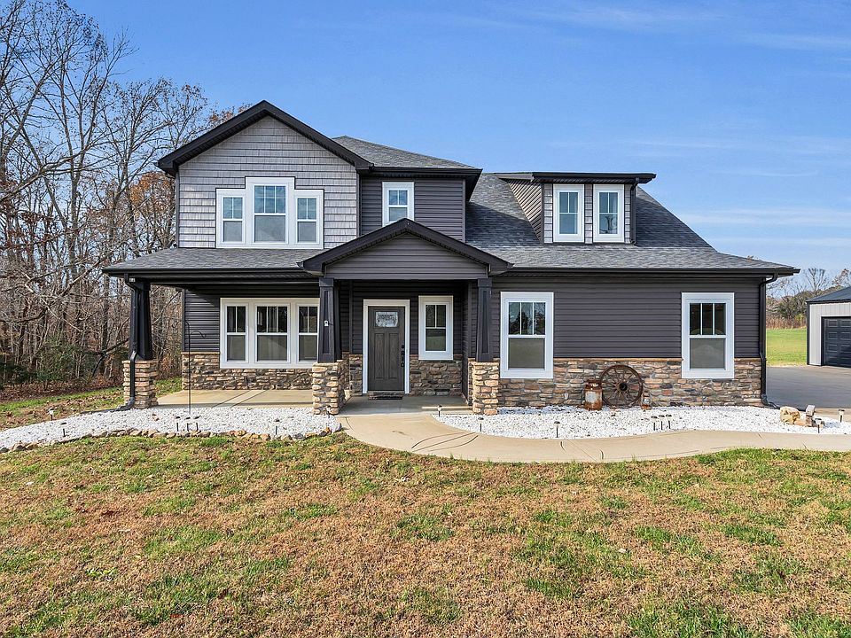 Beautiful Craftsman Style Home! Featuring 4 bedrooms and 2 1/2 bathrooms with unique, modern qualities throughout! Apartment-style second level offers diverse usage {open concept Living Room and Kitchen with pantry and laundry closet, 3 bedrooms and full bath, and custom rustic storage} constructed for future separate exterior entrance. Main level boasts an open-concept layout with beamed Living Room ceiling and the cutest custom dog house nook! Other features include Gas FP, walk-in Pantry, large island with bar seating, NO carpet, spacious Laundry Room, and built-in desk. Primary Suite with tray ceiling, walk-in closet, and private bath with double vanity and HUGE shower tiled floor to ceiling! Covered front and back porch for the most beautiful Tennessee sunrises and sunsets! Detached garage * 3 Level Wooded Acres * Meticulously cared for * See pictures for more details, so many unique and tasteful features throughout that set this home apart from the rest!