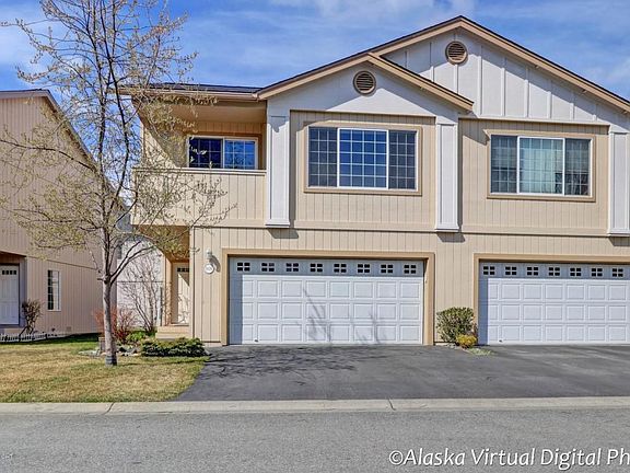 Want to live close to UMED/JBER AND have mountain views in a fab 2 bedroom condo WITH a 2 car garage? This awesome condo by Petersen Group is waiting for you! Includes 1 en suite bdrm w/full bath & office/den on 1st floor;2nd bdrm up.Open great room concept in the living room, dining room & kit. Fireplace, cathedral ceilings. Large windows bring in natural light. This unit has a useable driveway!