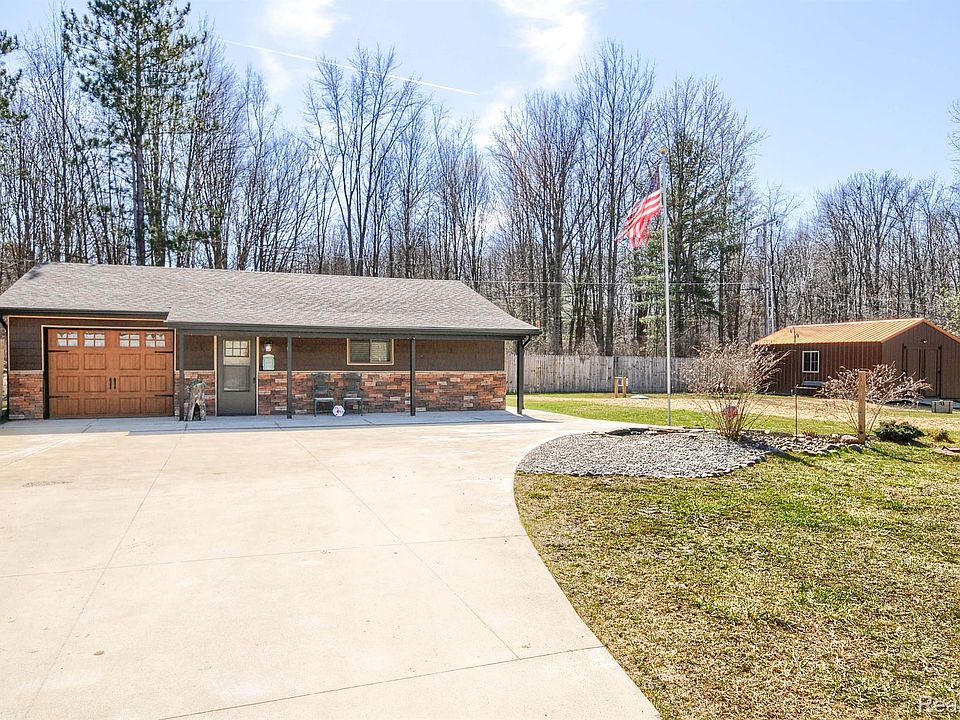 Situated on the beautiful park like 1.84-acre lot sits this 2 (possible 3) bedroom ranch that has been completely renovated! Spacious open floor plan with a gorgeous kitchen that features hickory cabinets and granite counter tops. Both bedrooms are located on opposite sides of the home along with an optional third bedroom that is currently used as an office area. The full bath has dual sinks with lots of storage. There is also a 10'x37' back porch that could be finished or used for extra storage. The home includes a tankless water heater, high-end fixtures, new engineered septic field (2023), new furnace (2023), foam insulated for great efficiency, RV hookup, and more! Outside you'll find the 14'x24' with electric, a pond for swimming or fishing and lots of space for outdoor events. Located conveniently close to M-15 for commuting!