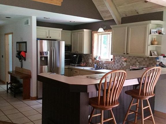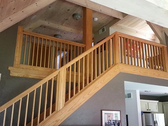 Beautiful timber & stonework interior in this custom built, quality home. Cathedral ceiling, beautiful stone fire place 3 levels of living space. Covered porch, additional garage with heated area that also has water for a man cave. Non-conforming bedroom in lower level. Natural gas is available at the road.
