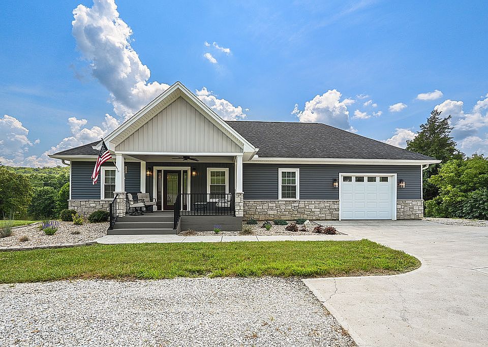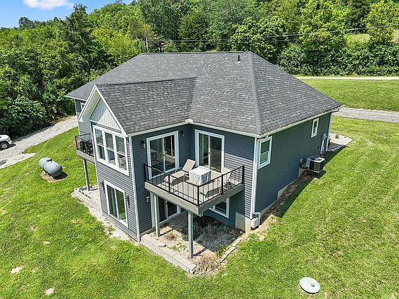 Welcome to this 4 year old waterfront home located right on the Ohio River tributary! With over 2 acres, there is plenty of room for a boat dock, or go fishing or kayaking right from your own backyard. This home also features 3 large bedrooms, 2-1/2 baths, an open concept living area with an abundance of kitchen cabinets, a kitchen island, granite counter tops and a walk-in pantry. There are 2 sunrooms, perfect for watching the wildlife on the river’s edge, and 2 outdoor decks for family barbecues or just relaxing. Also featured is a 2 car attached garage and a 12 x 20 detached garage for all your outdoor equipment needs. Other features include a large master suite with a walk-in closet, 2 upper level balconies, and French doors.