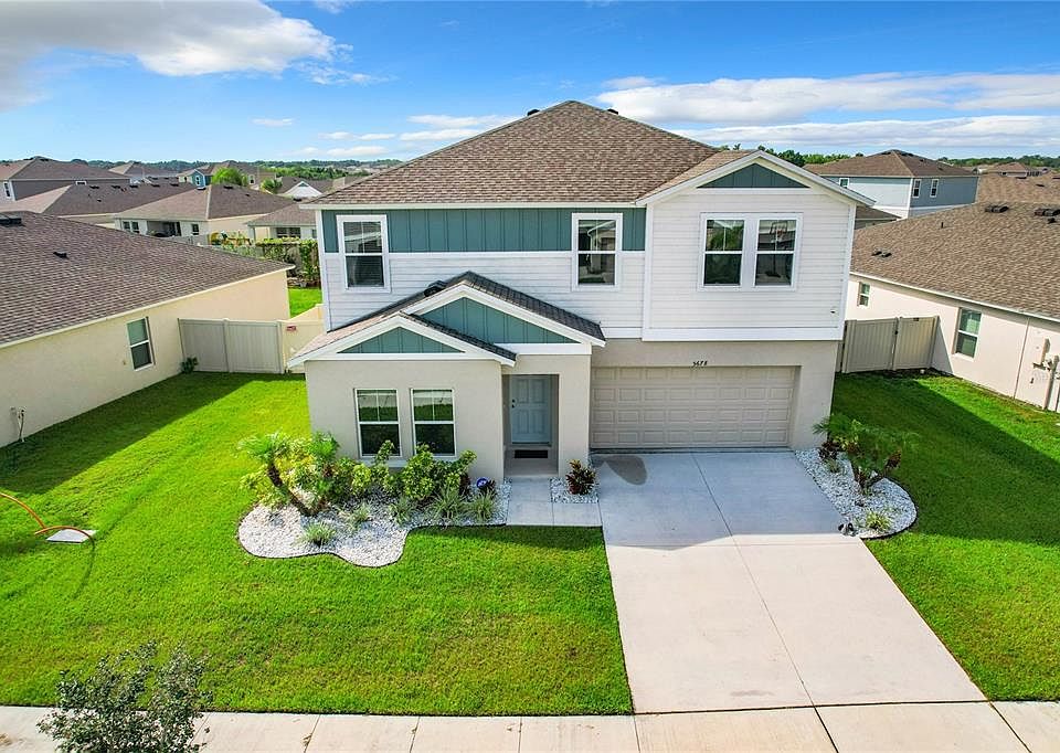 Step into luxury living in this exquisite 5-bedroom, 3-bathroom two-story home, nestled in a serene and picturesque community. Boasting an open concept design, this residence offers both elegance and functionality at every turn. Prepare to be wowed by the modern kitchen, featuring sleek granite countertops, a beautiful island, and a convenient pantry. Entertain with ease in the spacious living and dining areas, adorned with luxury vinyl flooring that exudes both style and durability. On the main floor, a private guest room awaits, providing the perfect retreat for visitors or a tranquil home office space. Upstairs, a versatile rec room or media room on the second-floor landing offers endless entertainment possibilities for the whole family. The split bedroom plan ensures privacy and comfort, with the private large primary bedroom tucked away for ultimate relaxation. Pamper yourself in the beautiful en-suite bathroom, complete with a large walk-in closet featuring a fantastic closet system to keep your wardrobe organized. Step outside to your own private oasis—a fenced yard provides a peaceful retreat for outdoor gatherings and playtime with loved ones. Enjoy the screened lanai, ideal for entertaining guests or simply unwinding after a long day. But the amenities don't end there—this beautiful community offers resort-style living at its finest. From parks for the family to a dedicated dog park and a sparkling community pool, there's something for everyone to enjoy. Experience the epitome of luxury living in this remarkable home. Conveniently located for commutes to Orlando and Tampa.