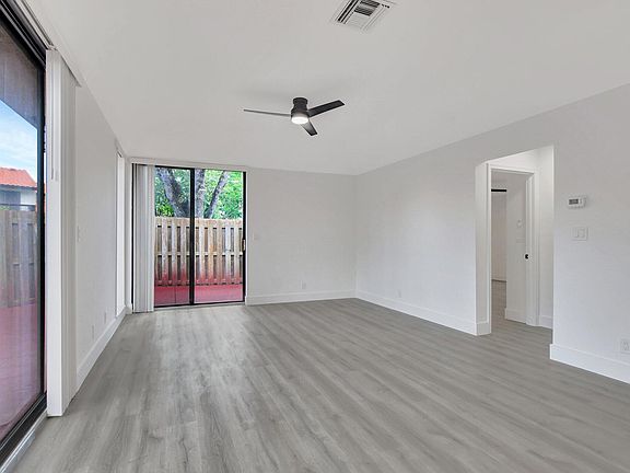Beautifully updated 2/2 one story corner villa features new luxury vinyl flooring, freshly painted interiors, new LED recessed lighting, new hot water heater, and a newer AC (2023). Wrap-around fenced patio, perfect for outdoor living and entertaining. Vaulted high ceilings with abundant natural light and includes a full-size washer and dryer for your convenience. Located right next to the community pool, it also comes with 1 assigned parking space and guest parking. Town Place has 24-hour manned gate, heated pool and spa, and picturesque trails with stunning trees. Enjoy a prime Boca location where you are close to Town Center Mall and Sugar Sand Park. Just minutes away from the beach, I-95, Turnpike, and more! Top Boca school zone with all A+ rated schools.