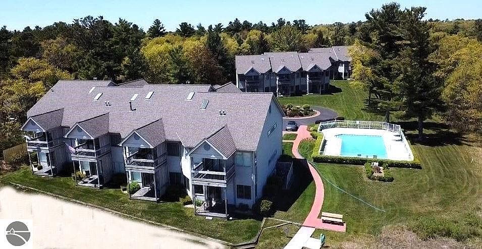 Welcome to your new Happy Place... Pine Ridge Bay Condominiums Located on the sandy beaches of Lake Huron. 200' of Pristine Private Beach and picture-perfect PURE MICHIGAN dunes, plus endless walk-able shoreline. Coveted heated pool to relax by or enjoy swimming, Kayaking, or walking the sandy shores of Lake Huron. Nicely maintained end lower unit (No Stairs) painted in warm neutral tones for easy decorating. White kitchen cabinets with blue counter tops evoking a maritime feel. Formal dining area abuts to the light filled living area with large picture windows, gas log fireplace and French doors lead to a brick patio, well-maintained grounds and swimming pool. Primary bedroom has double closet space, double sink vanity and a large walk-in shower. Second bedroom is located next to the main full bath, both bathrooms feature glass block overhead windows. Laundry room includes washer & dryer. An additional flex room provides with optional space for a den or overflow of guest. Upgrades include kitchen faucet, garbage disposal, dishwasher, new carpet in both bedrooms & maintenance free plank style flooring great for beachfront living. Condo is energy efficient. Association Dues $250 Monthly includes lawn & pool Maintenace, snow removal, garbage removal and insurance on the outside of the buildings. Don't miss this opportunity, the weather is warming for another amazing summer. Enjoy Beautiful sunrises from your patio in the mornings. After all this is the Sunrise side of Michigan. Units in this complex do not come available often.