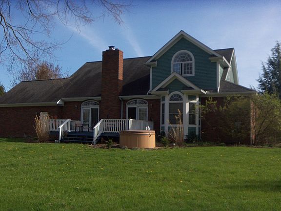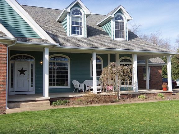 Custom-built, brick and cedar contemporary on 3.43 Acre private setting. The home boasts a large great room with atrium doors on each side of a woodburning fireplace w/ blower. First floor master bedroom suite plus a second master bdrm with full bath and walkin closet. Built with 2x6 construction, 5/8 in. drywall, Merillat cabinetry in the kitchen, arched Peachtree windows, hardwood floors, solid raised panel interior doors. Outbuilding holds 3 more cars and has 2 stalls and a tack area plus a 2nd floor for storage. It is heated, has electric and water. The land slopes in the rear after a backyard to a creek. Property runs on both sides of the creek. It"s a 3 min. drive to Route 21 (the best kept secret route to Akron, Canton or Cleveland! Forget fighting traffic on I-77 or I-71). Less than a mile to Lions Den Golf Course. 3 Min to Canal Fulton, OH.