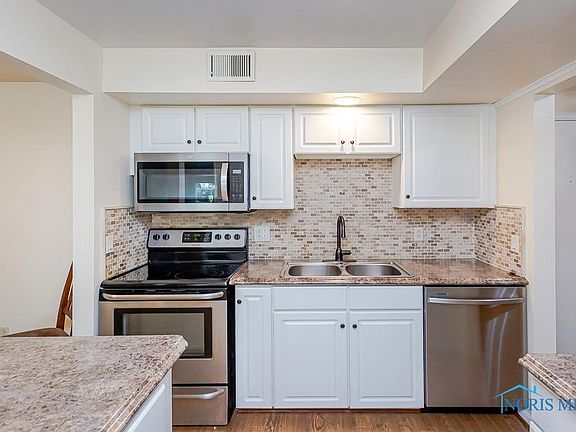 Updated & move in ready! New HVAC & walk in shower (2024); SS kitchen appliances (2023) & new counters w/snack bar. New bathroom vanities & sinks (2021), replacement windows & new sliding door opens to a paving stone patio. Laminate flooring in entry, hall & kit, new light fixtures plus interior is freshly painted (2024). Private storage area & underground parking space. Condo fee pays for gas, water/sewer; ext. maintenance, ext. hazard ins., trash, lawn care, snow removal & use/maintenance of the inground pool. Owner only pays for electric.