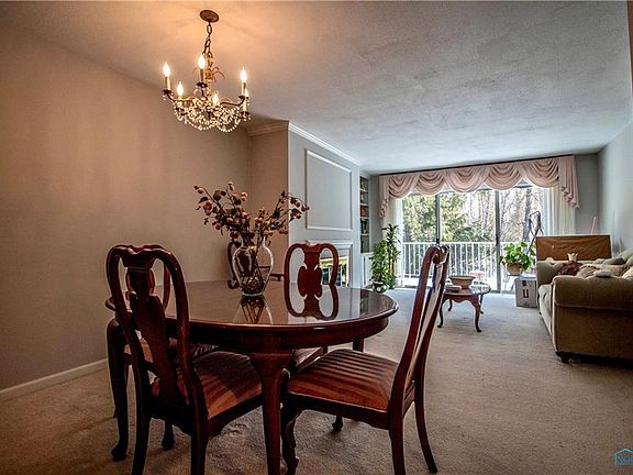 Perfect location Sylvania condo! Peaceful, wooded balcony view. 2 BR, 2 BA w/in unit laundry, comes w/washer and dryer. Spacious eat in kitchen w/all appliances. Formal Dining Rm, Living Rm w/fireplace & built ins. Master suite w/bath. Tons of storage. HVAC 2010. Water/heat included. Roof 2009. Underground parking & elevator. Secure entrance. Beautiful pool adjacent to unit! Home Warranty.