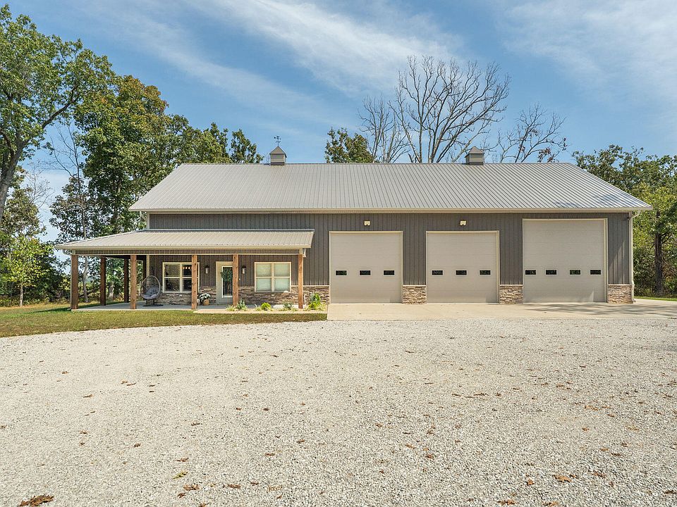 Elegant Country Living at Its Finest!Discover the perfect blend of rustic charm and modern luxury with this stunning and spacious barndominium, situated just 6 miles from town on a well-maintained blacktop highway. Nestled on 15 mostly wooded acres teeming with wildlife--including whitetail deer, foxes, squirrels, and the occasional bear--this property is a dream come true for outdoor enthusiasts.A long, private driveway welcomes you home, leading to beautifully landscaped grounds and an inviting entrance. Step inside to find a generous open-concept living area that flows seamlessly into an elegant kitchen featuring quartz countertops, abundant cabinetry, and extensive storage space.The luxurious master suite includes a private bathroom, and walk-in closet, while two additional spacious bedrooms share a beautiful second full bathroom. Head upstairs to find a cozy second living area and a private office or potential fourth bedroom--perfect for working from home or accommodating guests.With 2,500 sq. ft. of living space and an additional 2,500 sq. ft. of clean, well-lit shop space, the possibilities are endless. The shop boasts speckled concrete floors, LED lighting throughout, and even includes an interior RV hookup for electricity. Outside, you'll find a large parking pad along with sewer and electrical hookups for an RV, making this home ideal for travelers or visiting family.From its thoughtful floor plan and upscale finishes to the peaceful wooded surroundings and practical amenities, this property truly offers country living at its most refined. Don't miss the chance to make this beautifully designed home your own!