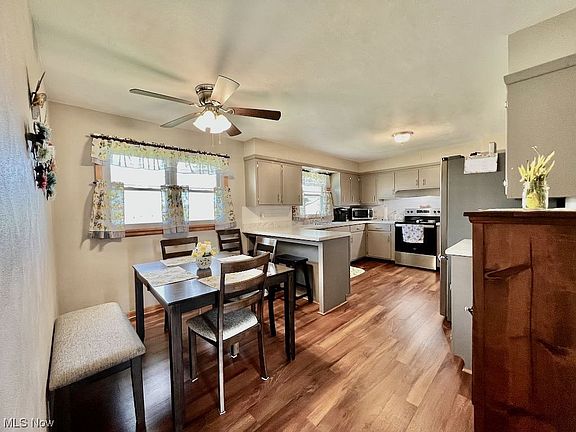 Looking for a cozy and updated ranch-style home in Carrollton, Ohio? Look no further than 568 12th St NW. This beautiful property boasts a 2-car attached garage and 2 spacious bedrooms. The kitchen is a dream, featuring newer appliances and plenty of space to prepare and enjoy meals with loved ones. Luxury vinyl plank flooring flows throughout the living room, hallway, kitchen, breezeway, and bathroom, adding both durability and style. The bathroom is complete with built-in storage, generous counter space, and a luxurious walk-in shower. For added convenience, the laundry area could easily be relocated to the deep closet in the second bedroom, providing optimal main floor living. The level yard of this property is truly a gem, complete with a storage building to keep all of your gardening tools and outdoor equipment organized. Additionally, the covered porch and large deck off the breezeway offer the perfect space to relax and enjoy the beautiful Ohio weather. Imagine sipping your mo