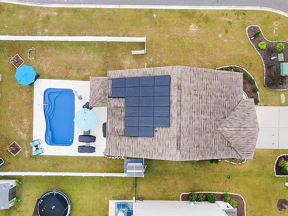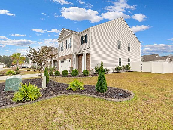Spacious 5-Bedroom Home with Private Pool and Energy-Efficient Features in Harmony at Saint James. Discover this meticulously maintained 5-bedroom, 3-bathroom home nestled on a desirable corner lot in Harmony at Saint James. Boasting an open floor plan with vinyl plank flooring throughout the main living areas, this two-story gem offers space, comfort, and modern amenities. The spacious kitchen features white cabinetry, granite countertops, stainless steel appliances, a large island with bar seating, and a spacious walk-in pantry. The first floor also includes a convenient spare bedroom and full bathroom, perfect for guests or multi-generational living. Upstairs, the expansive master suite awaits with a luxurious en-suite bathroom featuring dual vanity sinks and a walk-in shower. The second floor also includes three additional bedrooms, a full bathroom, and a versatile loft area perfect for use as a playroom, home office, or secondary living space. Step outside to your private backyard oasis, complete with a 14x25 saltwater pool, ample concrete decking for patio seating, and a fully fenced yard with white vinyl fencing for added privacy. The beautifully landscaped yard is accented with paver edging, adding charm and curb appeal. This home is designed for energy efficiency, featuring solar panels that significantly reduce monthly electric costs and an upgraded HVAC system with a medical-grade UV sterilizer air filtration system. Located in the highly rated Saint James School District and just a short 15-minute drive to the beach, this home offers convenience and top-tier amenities. Harmony at Saint James provides a low HOA and is conveniently located near shopping, dining, and entertainment. Don’t miss this exceptional property – schedule your private tour today! Measurements deemed reliable, buyer responsible for verification.
