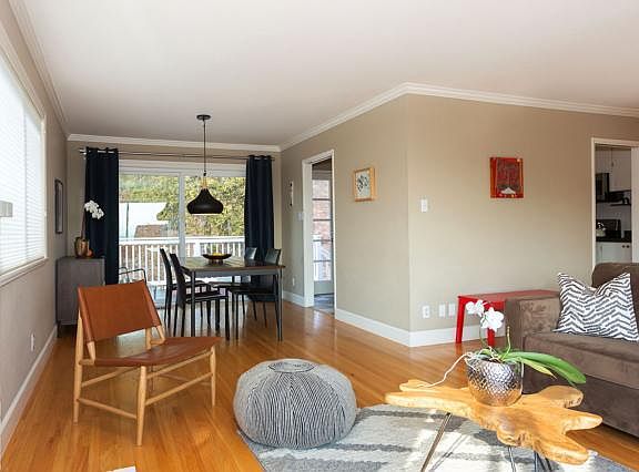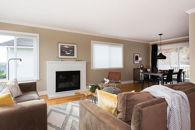 Modern mid-century ranch style home offers a desirable floor plan, filtered Bay views & great outdoor spaces. Sleek interior features stylish LR w/ fireplace, spacious eat-in kitchen overlooking rear grounds & great bonus spaces. Central dining area opens to the rear deck, perfect for entertaining.