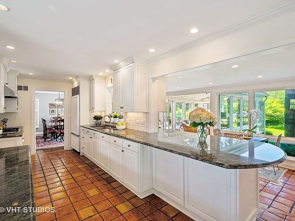 Nestled off a beautiful winding tree-lined street, this warm & inviting home is where family memories are made & remembered forever. Cozy front door entry with stone surround opens to reception hallway that leads to picture perfect sundrenched great room where you can watch the world go by. 1st floor office/library w/handsome built-cabinets and accent lighting. Spacious dining room opens to a fantastic entertaining patio which sets a welcoming casual tone. Happy sun-lit Chef's kitchen opens to solarium family room that overlooks oversized manicured backyard with gorgeous gardens and doors to patio. 2nd floor features a newer rehabbed master bed retreat w/natural stone spa bath, dual vanity, oversized shower and separate his and her walk in customized closets. 4 more bedrooms, one with an en-suite bath & 3 others share a newly rehabbed bath. Spacious lower level recreation room with incredible storage room. Attached two car garage which makes it that much sweeter. Don't miss this great home in the heart of Kenilworth... it's one that you feel right at home. Steps to Sears (Pre K -8th) & 2 minutes to train stop. Summertime at it's finest with a stop at Homers and a walk to the Kenilworth Beach!
