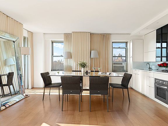 Massive steel casement windowsWell-proportioned dining areaAmple office nookLarge closetSleek white lacquer kitchenWide plank floorsWindowed mosaic tiled bathroom