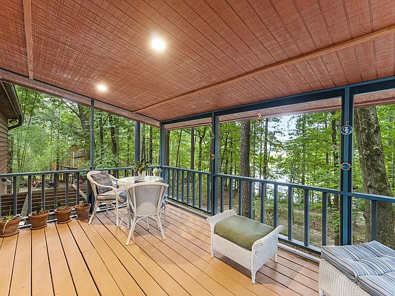 Looking for privacy? This cape cod is a waterfront sanctuary with a charming wraparound front porch surrounded by mature trees. Newly screened porch off the kitchen to relax and enjoy crisp fall mornings! Main level primary suite with spacious bath and WIC. Tons of storage, and a partially finished basement with endless possibilities including a full bath. Downstairs space perfect for a BBQ enthusiast or someone who wants to fish the stocked pond, host movie/game night, or just hang out in the cozy lower-level enclosed porch with wood stove. Pool table conveys. Adjacent 1.08 acre lot available to purchase. MLS # is 10005358