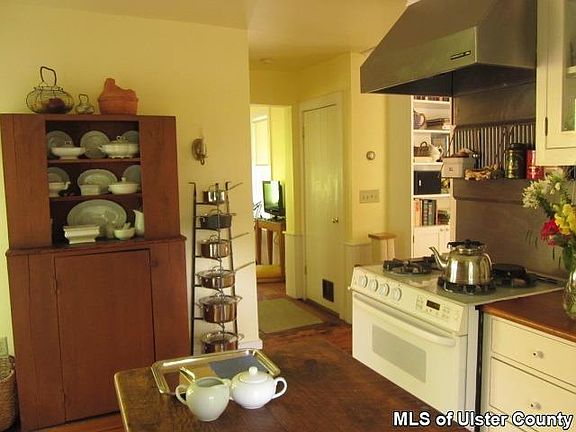 This is a gem of a renovated farmhouse. New kitchen, bathrooms, and all new insulated windows bringing in great light.. Beautiful workmanship in every detail especially the built-ins in each room. Enjoy the stone patio outside the kitchen for easy outdoor meals , or the fireplace in the dining room for eating in. Be sure to check out the wonderful, open, level area behind the house ,privately at the edge of the woods above. A perfect place for gardens and parties.