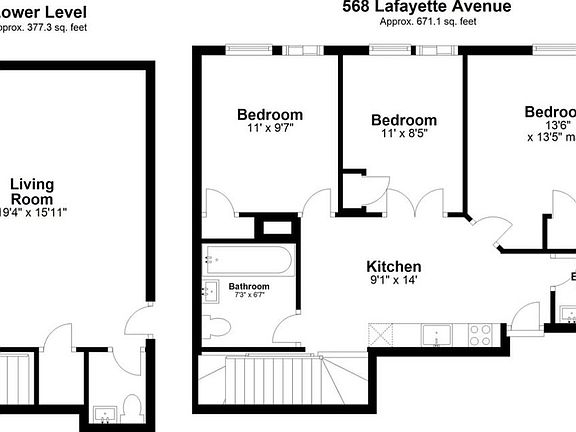 This 1050 square foot apartment home has 3 bedrooms and 4.0 bathrooms. This home is located at 568 Lafayette Ave #1B, Brooklyn, NY 11205.