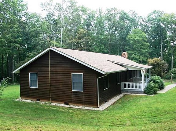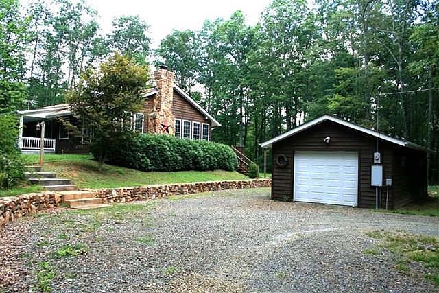 Ranch style home in excellent condition with #1 Top grade cedar siding (no Knotts). Architectural shingle roof. Anderson Double hung Double pane windows. Slate Patio, Rock walkway to detached garage and circular driveway. 3 Bedrooms - 2 full baths. Sunroom with rock fireplace, ceiling fan, cathedral ceilings and French door. Kitchen dining area has lots of cabinet space, congoleum vinyl flooring and 6ft sliding glass door leading to large back deck (30' x 16'). Hallway and 2 bedrooms doors are handicap accessable . Front porch (22' x 8'). One car detached garage (16' x 30') with power door. 4.91 ac. 1.5 open and 3.41 wooded. Land is level to rolling. Garden spot. Private. Restrictions. 3 miles to Meadows of Dan, VA and Blue Ridge Parkway. 25 minutes to Mt. Airy, NC.