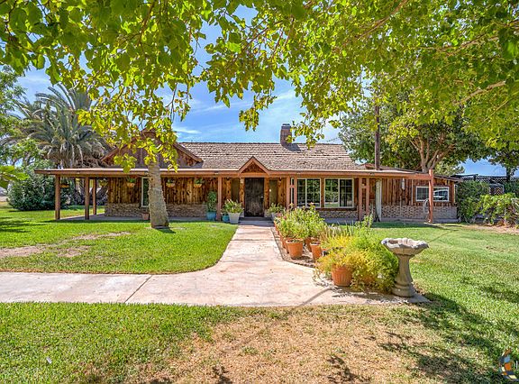 2.35 Acres in Imperial with dual water access! City water for the interior of the home and canal water for the exterior and grounds. Have you imagined lately how wonderful it would be to own a Country Property in Imperial.There is a Main House, Rose Garden, Veg. Garden, 2 Car Parking shed, Storage shed, Motorhome parking area.House Specs -- Main House Livable 1774 Sq. Ft. under roof = Livable 1774 + porches 528 = 2302 Sq. Ft.3 Bedrooms-- 15'x10', 13'x12', 13'x15', all have closets with the master bedroom having a Walk in 4'x8'closet. Bedrooms and most of house have 10' ceilings.Living Room--16'x17' with as side area 6'x7'. Living room has a large tiled fireplace with 2 large Blowers for room heating. Room is paneled in real wood (not stained or laminated) "White Alaskan oak". Ceiling is 10', there ia also a 5'x10' tiled enter way.Dining Room--11'x15' with 10' ceilings, with a built in China cabinets. Den--11'x9' with paneled dark mahogany, drop 8' ceiling. Kitchen--8'x25' with a 29