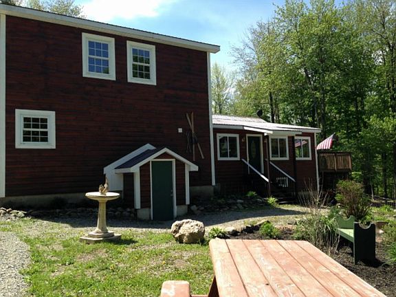 Nestled in the woods on10+ acres is this lovely three bedroom with sleeping loft, two bath home. Offers a nice bright and open first floor with a large kitchen/dining/ family room, sunny living room, two bedrooms and 3/4 bath/laundry with stackable washer and dryer. The second floor is the private master suite with large walk-in closet, master bath with jetted tub and cozy little sitting area. If you've thought about raising a few animals then this is the spot with it's small pony barn, goat barn and a hen house. Plus it offers a 12' x 20' greenhouse and numerous raised flower and vegetable beds.