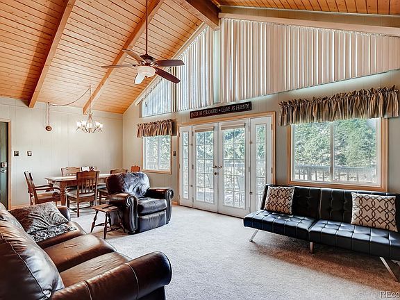 FANTASTIC opportunity to own a recreational property in Sportsman's Paradise! .84 acre lot backing to National Forest! Gated community with views of private community ponds from the home in a gorgeous mountain setting! Private community access to approximately 1.8 miles of the South Platte River and (7) community ponds make for an ideal family get-away and phenomenal fishing opportunities! The home itself features a wrap around deck with unique views from every angle, circular drive, and 2 separate storage sheds! 2 beds up / master bed down! 2 baths (full and 3/4)! Wood burning fireplace! Separate family and living rooms! Spacious kitchen with plenty of work space and cabinetry! Most furniture is included. Some updates thru-out! Close to Lake George for needed groceries or gas! ATV and hiking trails a hop, skip, and jump away! Take a look now before its gone! CURRENTLY least expensive opportunity in Sportsmans Paradise!!!