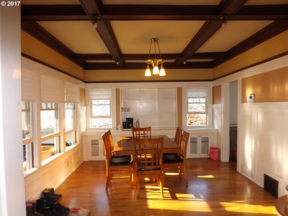 So many great and unique features about this house! In addition to hardwood floors, lots of windows and charming built-ins, this home also features coffered ceilings in the living & dining rooms and a barrel ceiling in the upstairs bathroom. Both bathrooms have been updated but remain true to the style of home. There is an oversized single car-detached garage with large shop space for a total of 864 sqft.