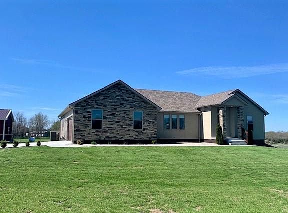 This GEM OF A HOME is only 1 yr old and sets on 5 ACRES in Hazel Hill Subdivision just north of Warrensburg. Open Floor Plan! Stunning custom cabinets; lots of kitchen storage; cozy fireplace; thermal windows w/ custom blinds; SS appliances, LRG pantry, granite counters. Vaulted Ceilings; abundant natural light throughout; hardwood flooring; all 3 bdrms on main level as well as laundry room. Oversized 2 car attached garage. 30x40 heated shop w/6 in concrete floors and fully insulated. Basement partially finished
