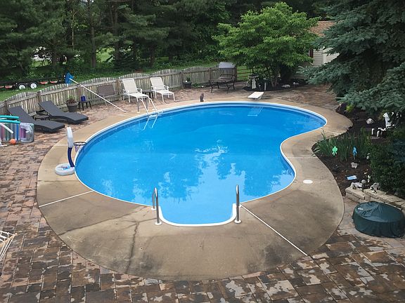 1.75 Acres Awaits ~Entertain in this Kitchen with corian counters, two cook surfaces, ample storage*Deck off DR leading to hot tub, in-ground salt water pool inside fenced area and Large 12x24 Shed*Laundry Room Upstairs*LR has fireplace *Wood Stove and Half Bath in Basement* Oversize Two Car Gar*Sellers need rent back until approx Sept.*Audio/Video Security Sys not incl.