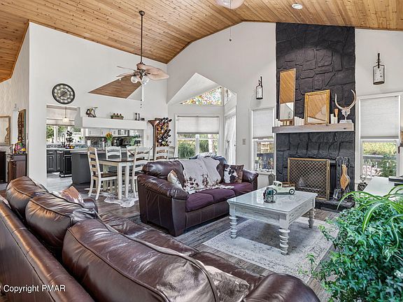 GORGEOUS CONTEMPORARY in TOWAMENSING TRAILS! 3Bedroom 2.5 Baths with a large Custom Bonus room that boast SOARING PINE CEILINGS! NEWER CUSTOM KITCHEN with HIGH END APPLIANCES and GAS RANGE. OPEN CONCEPT dining and living area with VAULTED CEDAR ceilings, NEW FLOORS and floor to ceiling FIREPLACE! SO MANY UPGRADES throughout this property... PALLET ACCENT WALL in PRIMARY BEDROOM, 4 HEAT SOURCES , SLAB CRAWLSPACE, GORGEOUS LANDSCAPING with a PEACH TREE AND FIRE PIT ! Did I mention the STORAGE SHEDS, GAZEBO AND CUSTOM TINY HOME/SHED with Electric and Heat !! ALL of this in the heart of the POCONOS! 10 minutes to LAKE HARMONY, JFBB AND 15 MIN. TO DOWNTOWN JIM THORPE ! CONVENIENTLY LOCATED to I -476 AND I-80