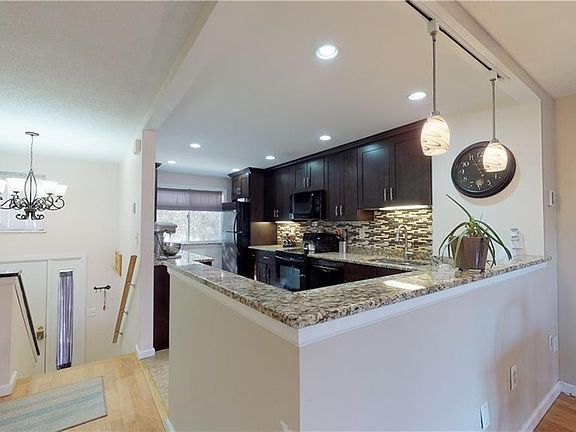 Completely renovated with open floor plan unique to these units in Sound Breeze!! Set back unit overlooking playground area for your use. Lots of natural light, nothing to do but move in! Lower level finished family room with bath, laundry/utility area could also be used as 3rd bedroom. Generous sized bedrooms and a kitchen to die for!