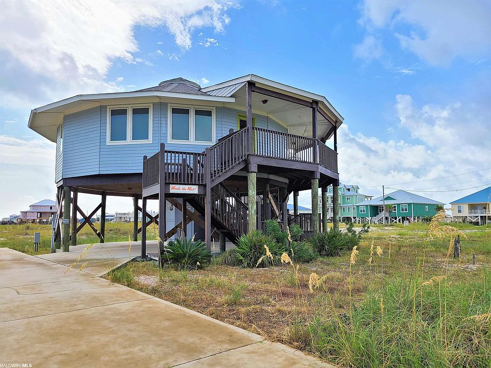 This unique home is a Gold Fortified Deltec Hurricane Resistant Structure, only sustained a few missing shingles during Sally! Adorable, well maintained beach cottage just steps from the beautiful Gulf and beaches!! Beach/Water access only 200 ft from driveway~AMAZING unobstructed views of Gulf from the comfort of the large covered deck along with Bay views from the other side of the deck! Granite counters, soft close cabinets, deluxe interior trim, and stylish coastal decor! Brand New HVAC and Grinder Pump in 2020. Full RV hookup on site, next to house. Fiber Cement siding, high impact rated windows, Ring & Arlo security cameras. Home is sold furnished with exception of a few items (list available upon request) ~sleeper sofa and sturdy bunks offer plenty of room for guests!! Large storage shed under home. See Features list in Docs.