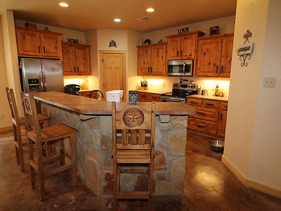 Enjoy the wide, open spaces in this beautiful 4 bedroom, 3 and 1/2 bath country home situated on over 5 acres! Natural stone and stained concrete is the theme throughout--from the first impression of the impressive stone exterior to the many custom features inside the home. The stone fireplace is a prominent focal point in the living room with the gorgeous stained concrete floors displayed in the open floor plan. The stone breakfast bar is a gathering point in the modern kitchen with stainless steel appliances and custom cabinets. The spacious master suite has double wooden doors that lead to the master bath with spa like atmosphere created by the stone jetted tub and spectacular walk-through stone shower. The large game room upstairs provides a bonus area for family fun. This is truly your "Field of Dreams" complete with the lighted baseball field, stock pond and workshop, so many reasons you'll want to make this your new home!