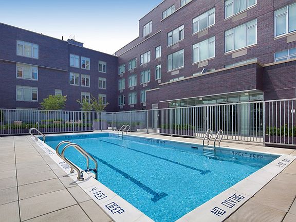 $0 Security Deposit when using the Guarantors. DIRECT DEALS. NEW RESIDENTS ONLY. Within the unique facade of The Union Williamsburg apartments for rent are vast brightly lit apartments that offer room to liveand live it up. Light pours in through oversized windows, some spanning from floor-to-ceiling, and across the warm-toned hardwood flooring to create a luminous setting. The kitchens are the envy of designers and chefs alike with high-style and high-performance elements that include white matte custom cabinetry and gleaming stainless steel appliances. The Caesarstone countertops at these Brooklyn apartment rentals are spacious enough for all your gourmet pursuits and glamorous enough to play bar for a night during parties. Spacious bathrooms feature cool subway tiling, custom vanities and tremendous storage space.