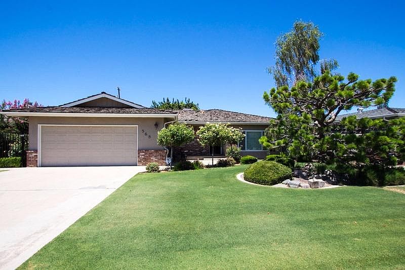 Great location plus beautiful home. Across the street for the quiet retirement community Palm Village, the pride of ownership shows in the 3 bed 2 bath beauty, including living and family rm. Plush carpet and shutters in living rm. Wood laminate floors in entry, dining and family room. The backyard is a DREAM. Covered patio plus lush landscape with gardens and walk ways. The alley access makes potential RV parking or adding a pool easier. At list price seller will include replacement of roof prior to close of escrow.